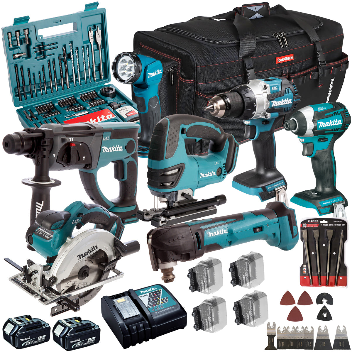 Makita 18V 7 Piece Combo Kit with 2 x 5.0Ah Battery Charger & Accessories Set T4TKIT-17231